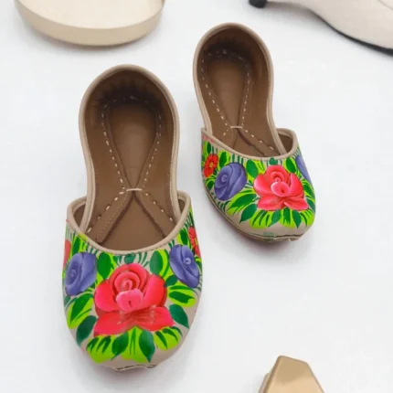 Mint Blossom Hand Painted Khussa In Sea Green -2471