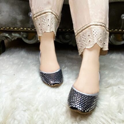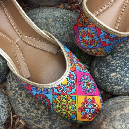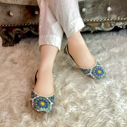 Sea Green Flower Digital Printed Khussa For Her-2413