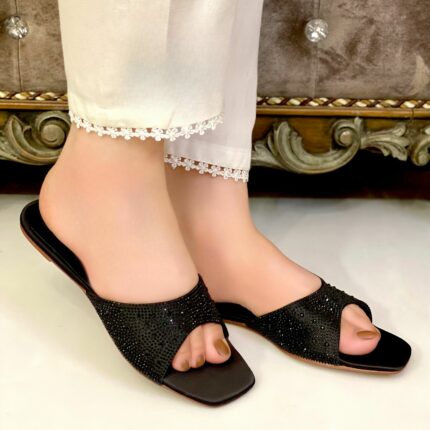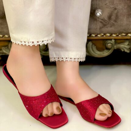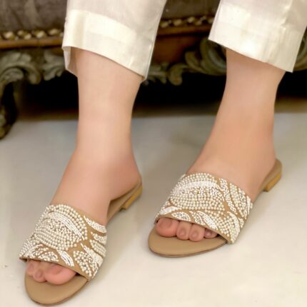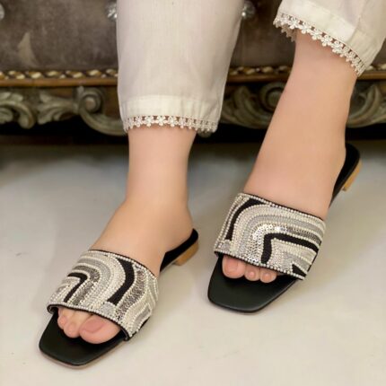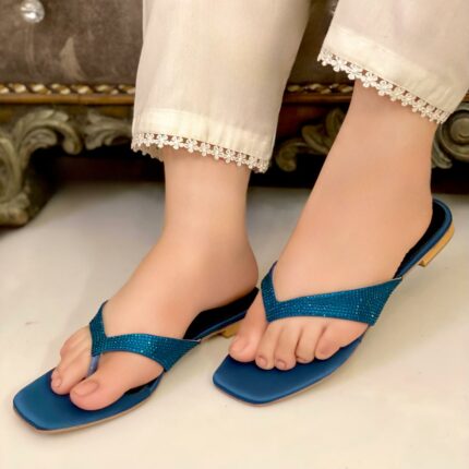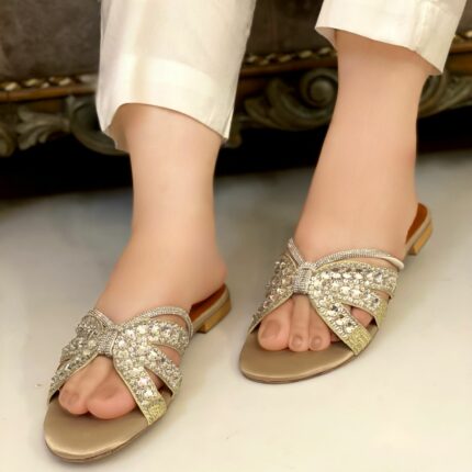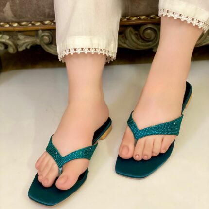 Green Kolapuri Flats With Thread Work Embroidered-3374