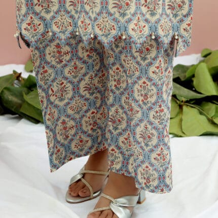 beautiful outfit that combines comfort and style. This suit is like a graceful dance of butterflies on your clothes, making it extra special. The colors are soft and pretty, just like the wings of butterflies in a garden.
