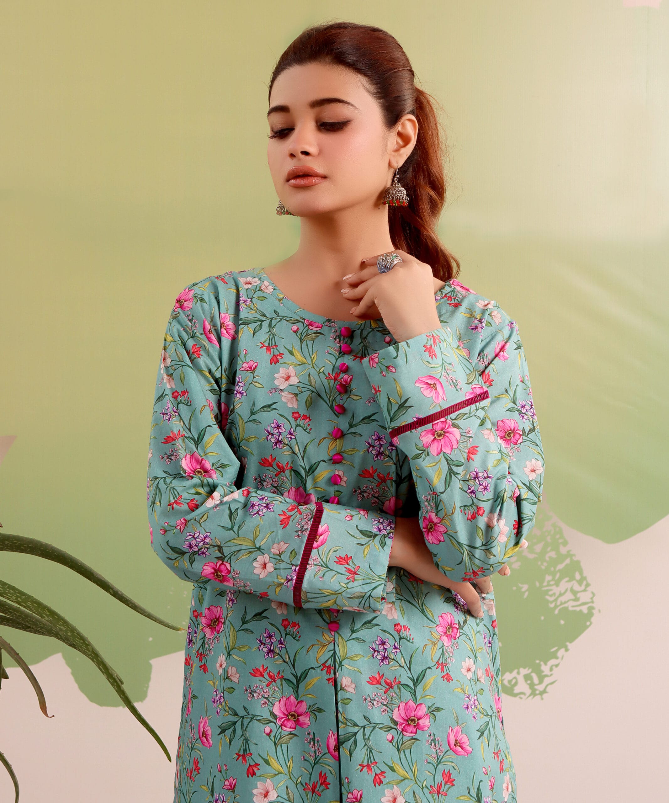 Embrace the beauty of nature with our Floral Radiance ladies’ suit – a wardrobe essential for the woman who appreciates style with a botanical touch.