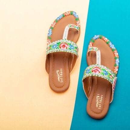 White Hand Painted Kolapuri For Her-3366