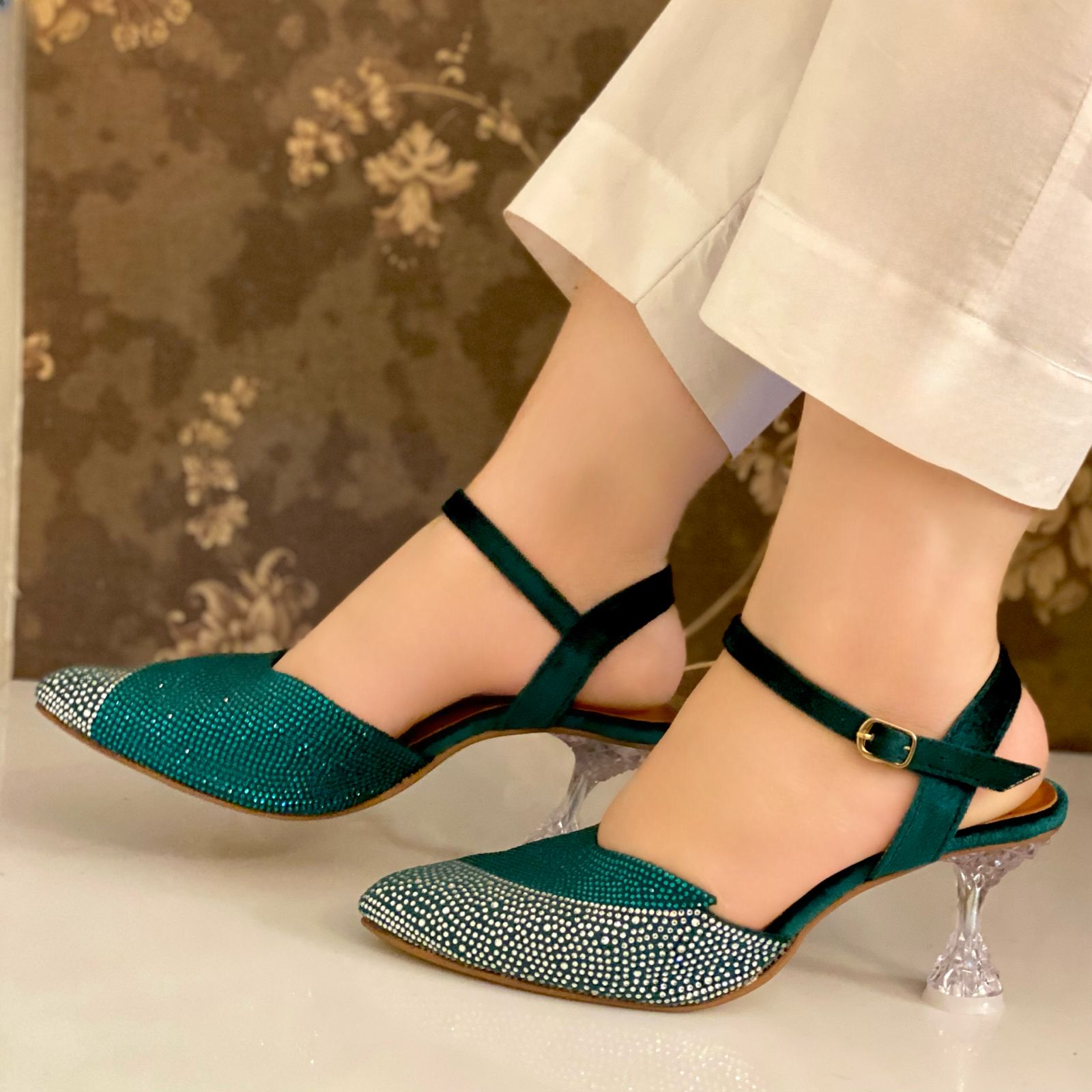 Green and Silver Glitter Heels For Her-7253