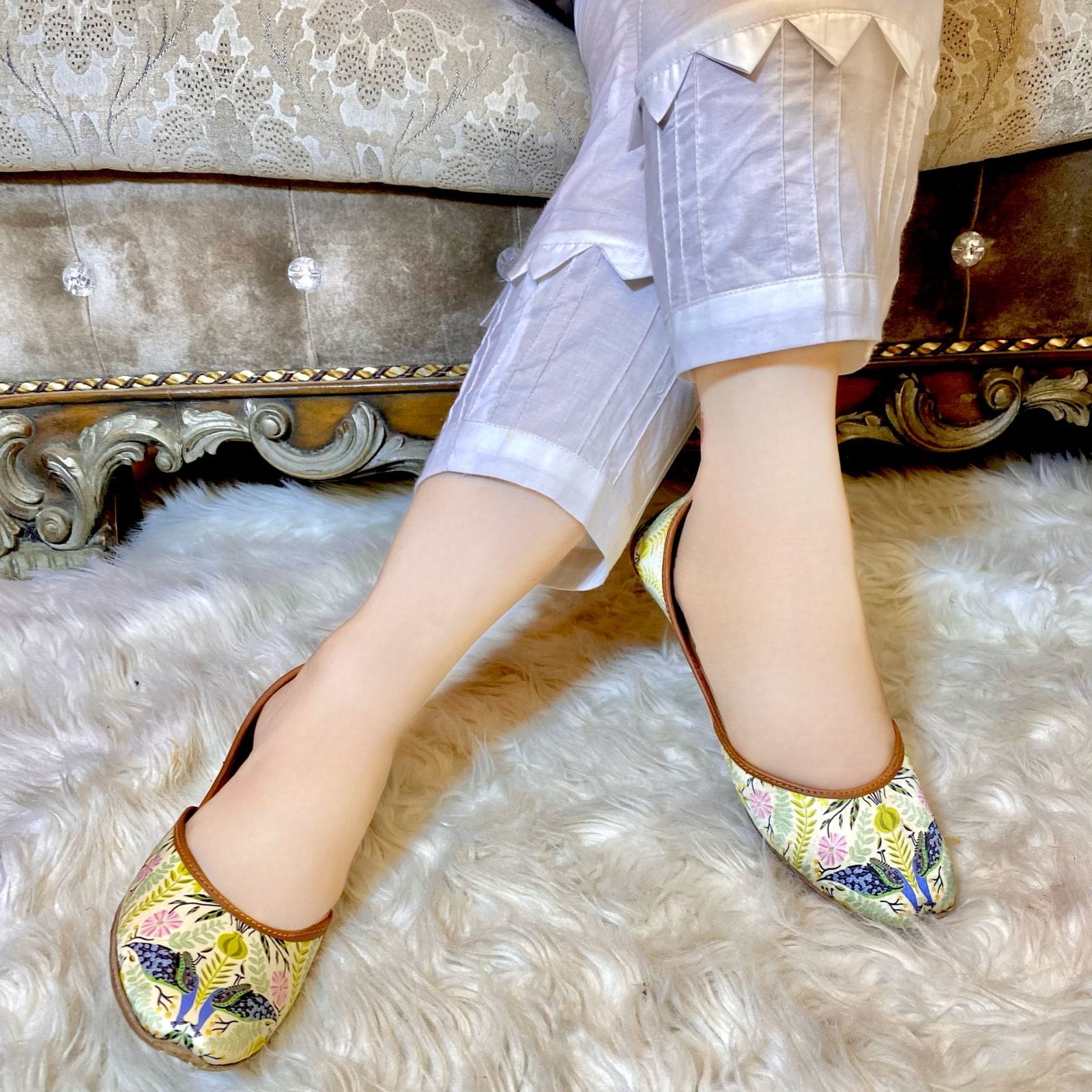 Step into style and comfort with our casual digital printed khussa collection. These beautifully crafted slip-on shoes seamlessly blend tradition with contemporary flair. Each pair features vibrant digital prints that add a pop of color and personality to any outfit.