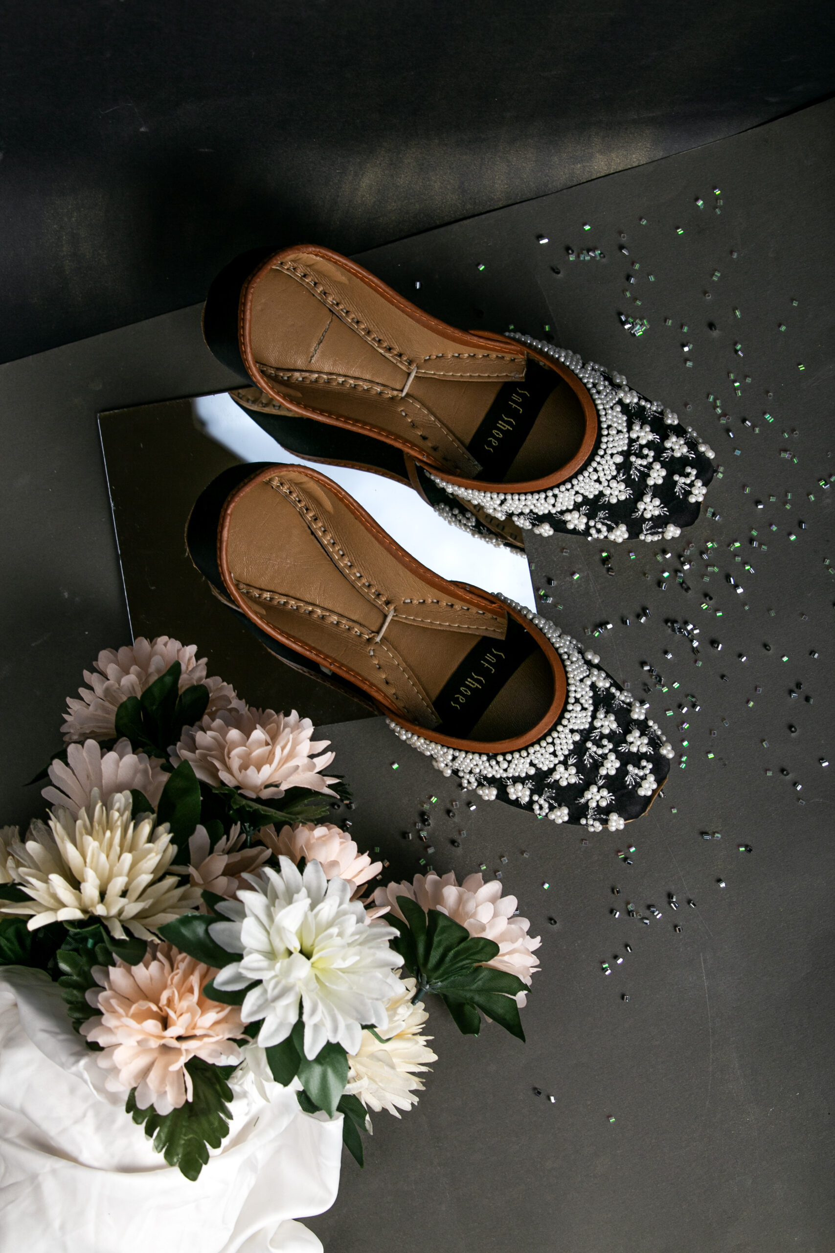 Black khussa with pearls for Her-2269