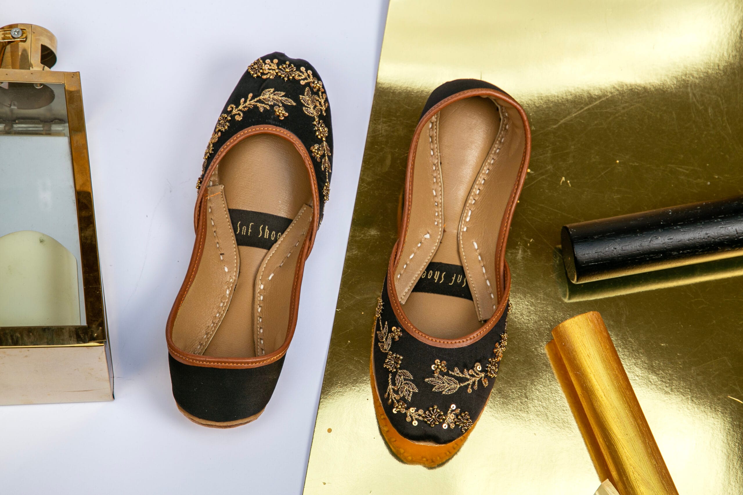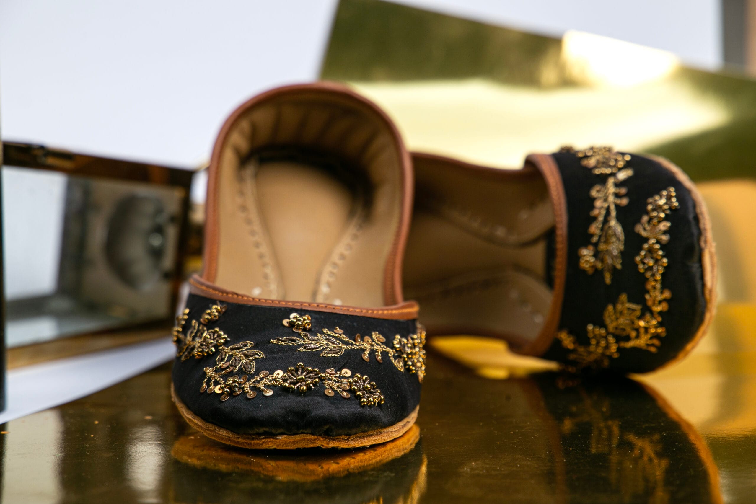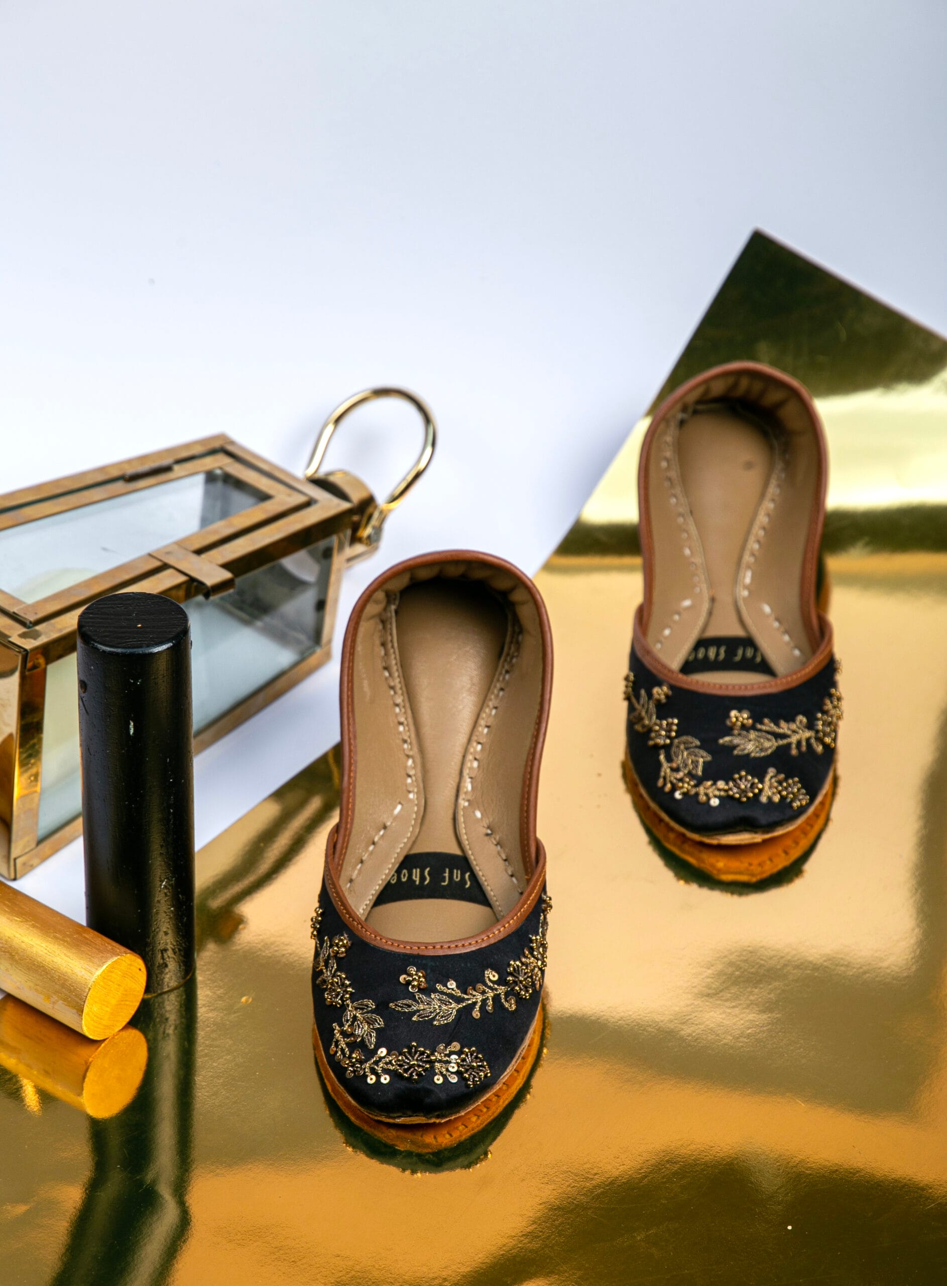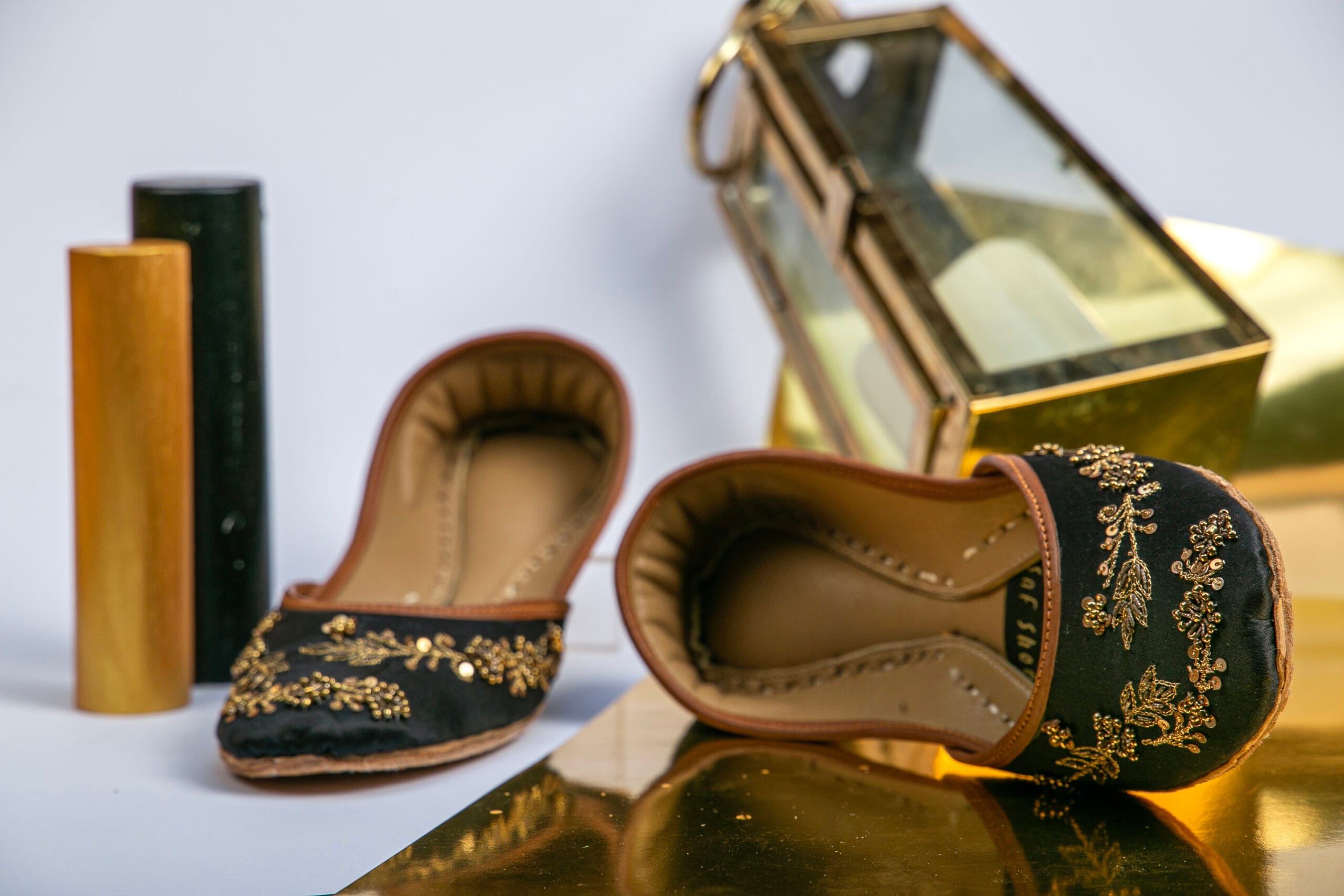 Our black khussa is adorned with meticulous Dabka and Cora work, creating a stunning contrast against the deep black base. The intricate patterns and shimmering embellishments are a testament to the skill of our artisans. Each pair is a work of art, designed to captivate and impress.