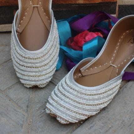 Khussa shoes have a rich history that dates back centuries, originating in South Asia. Our Off White Embroidered Khussas seamlessly blend this tradition with a touch of modern flair. The classic silhouette ensures comfort and a snug fit, while the floral embroidery adds a touch of sophistication and style.